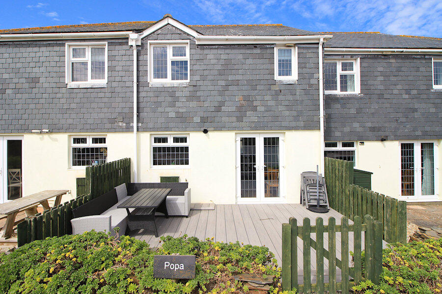 Popa sits within the central courtyard of Polmark Beach Cottages, just a couple of hundred metres from Harlyn Bay beach.Comfortably sleeping six Popa has a real home-from-home feel, is dog friendly and benefits from a south facing decked garden with parking for two cars.Downstairs comprises of a large modern kitchen diner and comfortable lounge. Upstairs has three bedroom with an en-suite in the master and a full family bathroom.Less than three miles from the picturesque town of Padstow famed for its restaurants and with its stunning harbour all the amenities a holiday may require are not far away. Popa is the ideal base to explore all Cornwall has to offer.