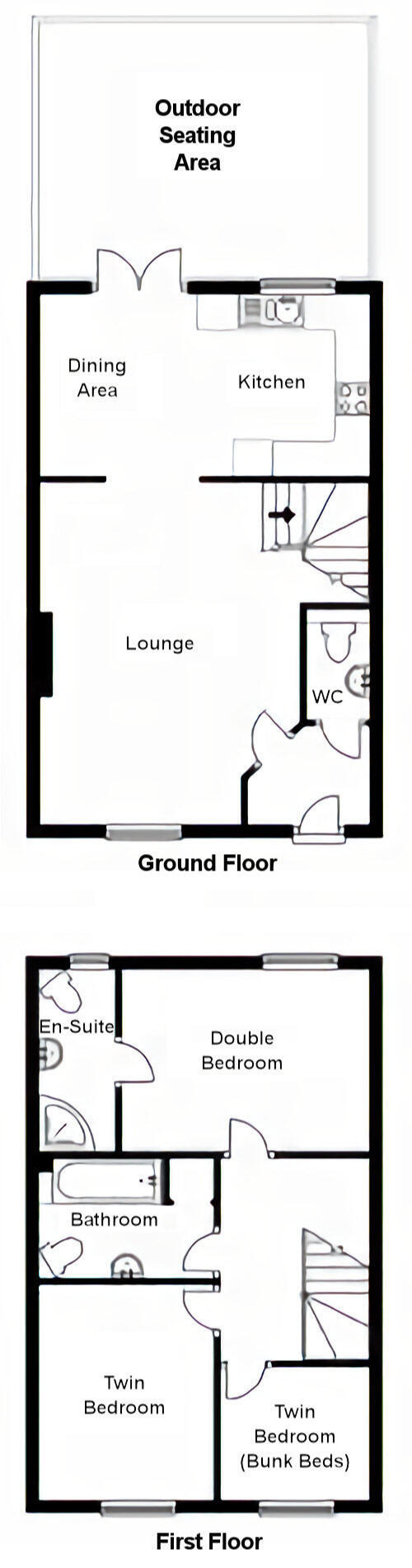 Stroll through the sheltered courtyard to find Popa’s front door and enter into your holiday home.The cottage entrance has plenty of space to dump the flip flops (or wellies) and a convenient WC.The ground floor opens up leading into a bright lounge with a real coastal feel. Sofas with the right amount of squash sit around a large flat-screened TV, perfect for those family evenings where everyone can flop down together after a hard day at the beach.A large archway leads through to the kitchen diner, which is flooded with light from the large French doors that lead out onto the decking.Decorated in vibrant seaside tones, this modern kitchen features marble countertops and a splashback tiled in deep ocean hues.Grab a mug from the selection of Cornishware crockery and take your coffee out to the decked rear garden, the perfect spot to enjoy the morning sun.Stairs lead from the lounge area to the upper floor, with a bunk room, perfect for the kids, and a twin room both looking over the internal courtyard. A stylish tiled bathroom sits conveniently next door, and the sunny master bedroom benefiting from its own ensuite.As well as its own south facing decked garden which leads directly from the kitchen diner, Popa has use of Polmark Beach Cottages communal areas. These include the sheltered internal courtyard and the larger garden and BBQ area at the rear of the property, a great spot to spend those warm Cornish evenings.Access: